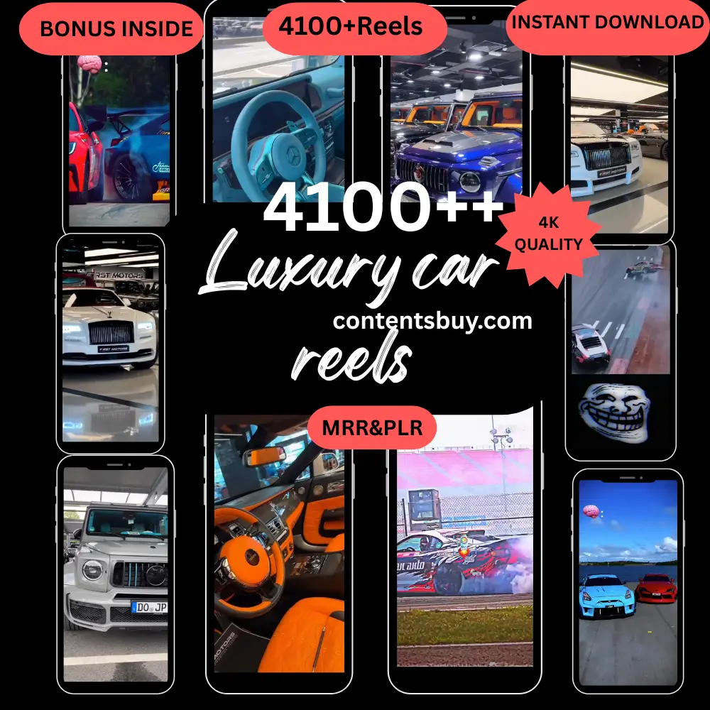 Download 4100 Premium Luxury viral car reels for all social media content. Get your Pack at contentsbuy.com. 4k High quality viral supercar content.